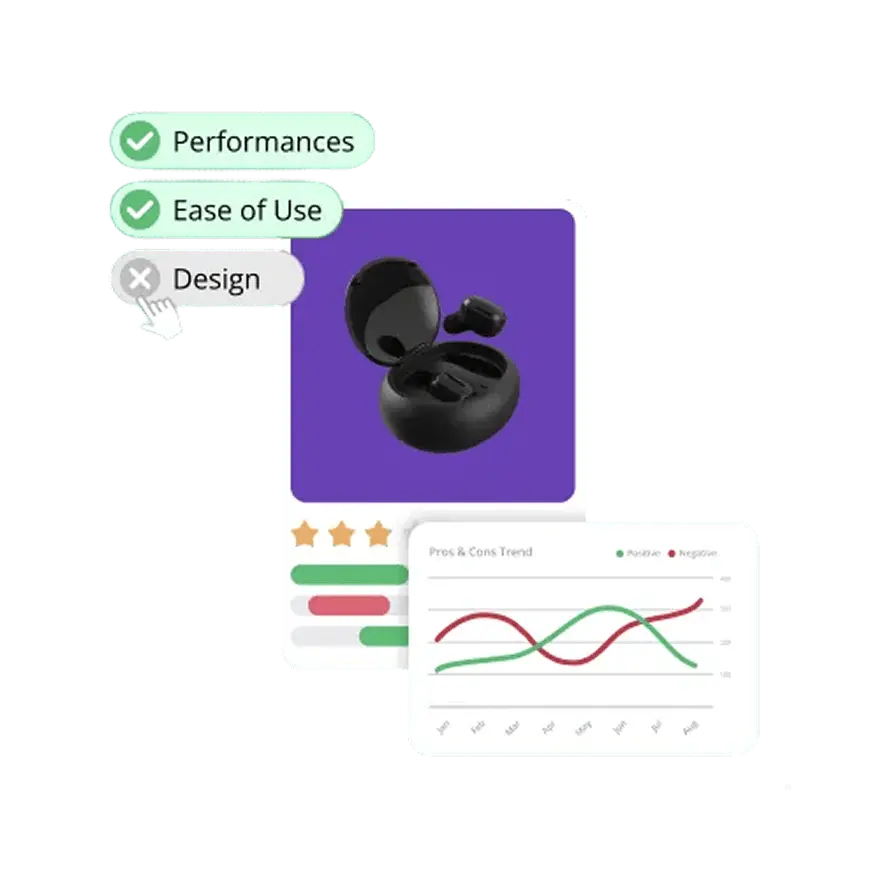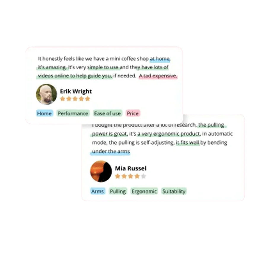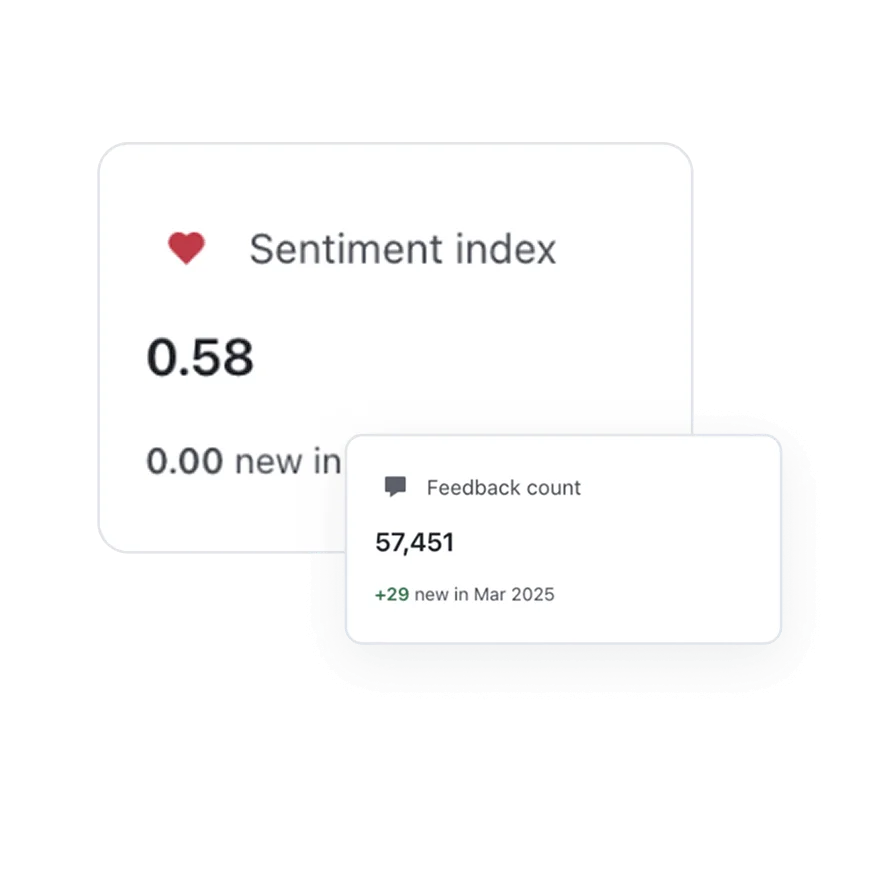 Our AI cleans, indexes, and enriches feedback, enabling quick aggregation for deep-dives or high-level trends — all in just a few clicks.