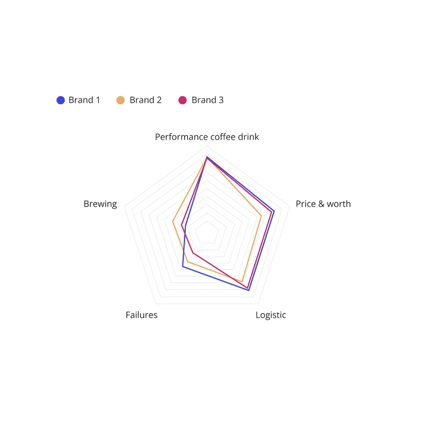 Design charts tailored to yourenterprise reporting needswith our custom charting tool. Select the ideal visualization, segment data as needed, compare KPIs and market reference, and share insights with your colleaguesin just one click.